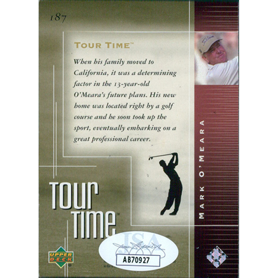 Signed Mark O'Meara 2001 Upper Deck Golf Card #187 in black sharpie. This item is certified by James Spence Authentication (JSA) with sticker affixed to item and matching card.