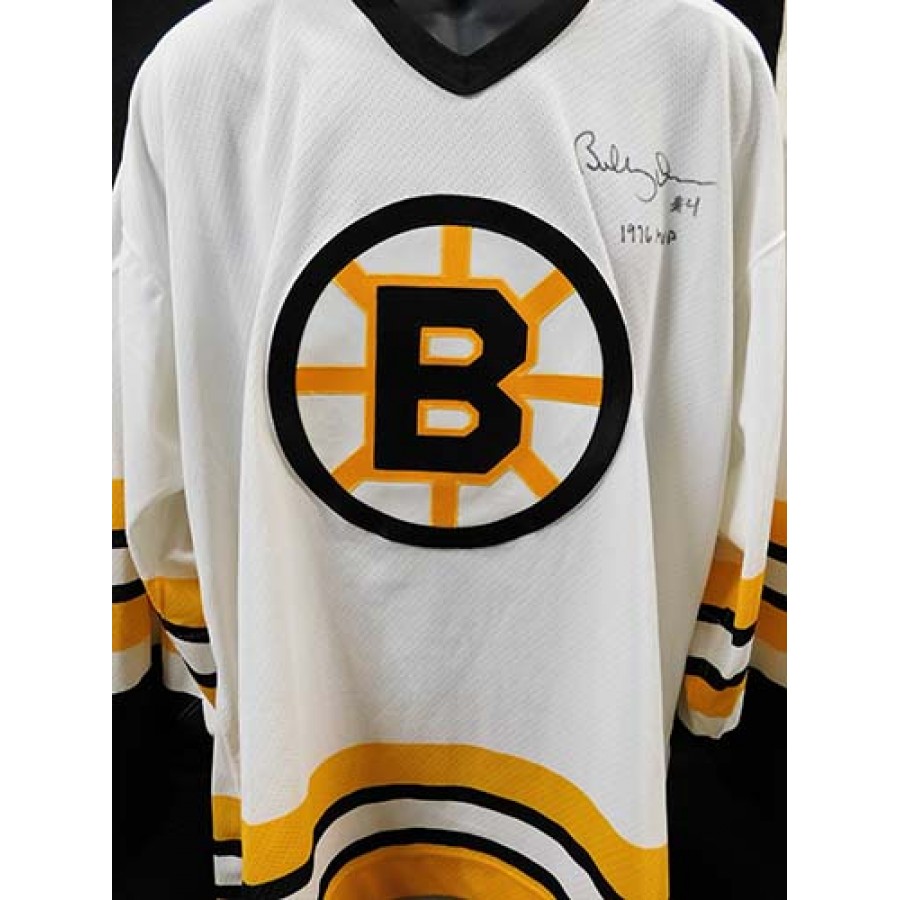 Signed Bobby Orr Boston Bruins Authentic Jersey size 54 in black sharpie with "1976 MVP" inscription. This autograph has been certified by James Spence Authentication (JSA) with sticker affixed to the item and matching card.