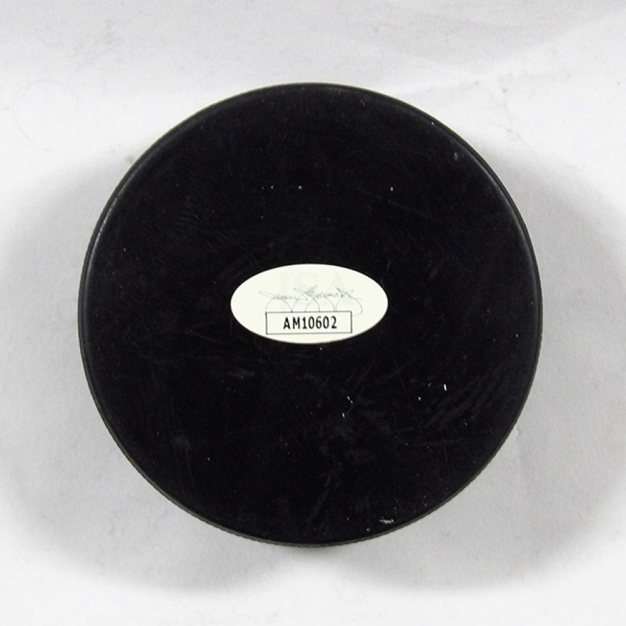 Signed Jeremy Roenick blank hockey puck in silver ink. This item has been certified by James Spence Authentication (JSA) and will come with a sticker on the item and matching card.