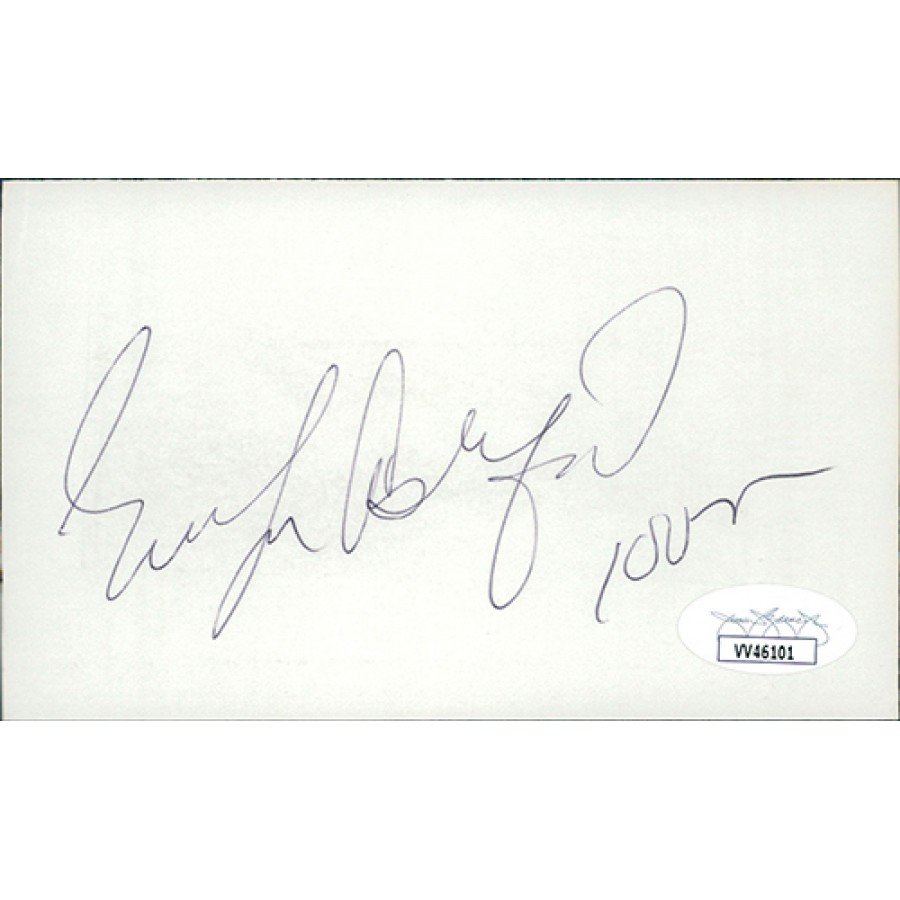 Signed Evelyn Ashford 3x5 Index Card in black ink. This item has been certified by James Spence Authentication (JSA) with sticker affixed to item and matching card.