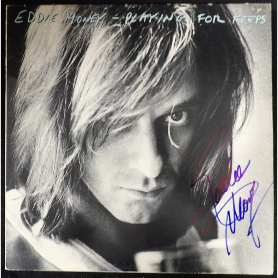 Signed Eddie Money Playing For Keeps Record Album on the cover in blue sharpie. The album does shows use and has scuffing, creases and wearing. This item has been certified by James Spence Authentication (JSA) with sticker affixed to item and matching card.