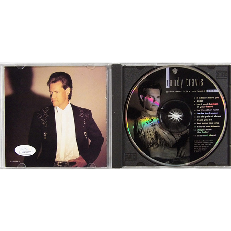 Signed Randy Travis Greatest Hits Volume One booklet cover in silver sharpie. It does include CD and case but is considered to be in used condition. This item has been certified by James Spence Authentication (JSA) with sticker affixed to item and matching card.