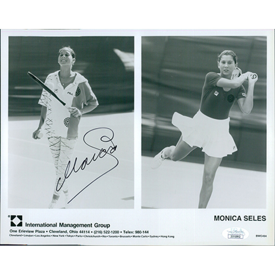 Signed Monica Seles 8x10 glossy finish photo in black sharpie. The autograph has been certified by James Spence Authentication (JSA) with sticker affixed to item and matching card.