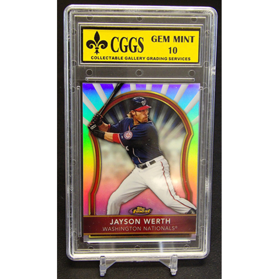 Jayson Werth Washington Nationals 2011 Topps Finest baseball card #38. This is numbered 480 of 549. It is graded a CGGS 10 Gem Mint. There is some wearing of the case.