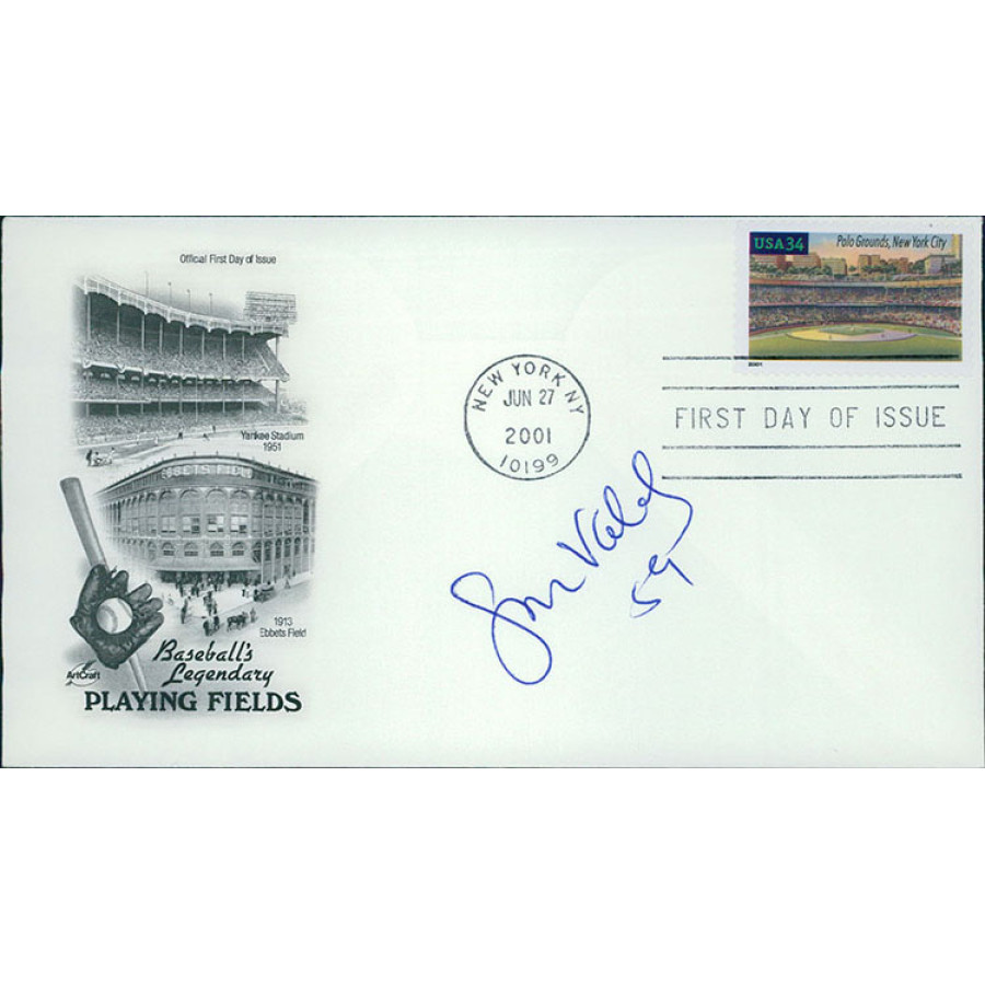 Signed Ismael Valdez Baseball's Legendary Playing Fields First Day Issue Polo Grounds Stamped Envelope Cachet in blue pen. This item has been certified by James Spence Authentication (JSA) with sticker on item and matching card.