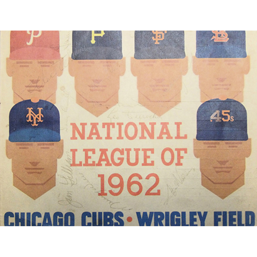 Los Angeles Dodgers 1962 Team National League program by 17 players in pencil by all. The signatures include: Walter Alston, Leo Durocher, Duke Snider, Don Drysdale, Maury Wills, Jim Gilliam, Wally Moon, Stan Williams, Larry Sherry, Ron Fairly, Ed Roebuck, Johnny Podres, Phil Ortega, Lee Walls, Doug Camilli, Daryl Spencer and Tim Harkness. This item has been certified by James Spence Authentication (JSA) and will come with letter of authenticity.