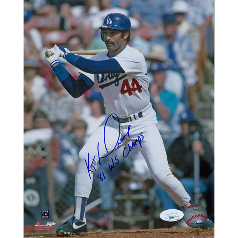Signed Ken Landreaux Los Angeles Dodgers 8x10 glossy finish photo in blue sharpie with "81 WS Champs" inscription. This item has been certified by James Spence Authentication (JSA) and will come with a sticker on the item and matching card.