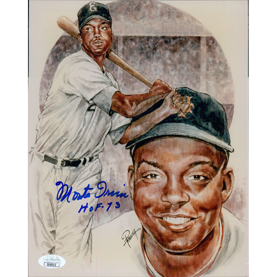Signed Monte Irvin New York Giants 8x10 matte finish photo in blue sharpie with "HOF 73" inscription. This item has been certified by James Spence Authentication (JSA) with sticker affixed on the item and matching card.