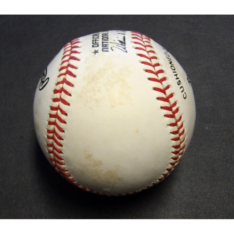 Signed Stan Musial Spalding Official National League Baseball in blue pen on the sweet spot personalized. The ball does have some spotting/toning to it. This item has been certified by James Spence Authentication (JSA) with sticker affixed to item and matching card.