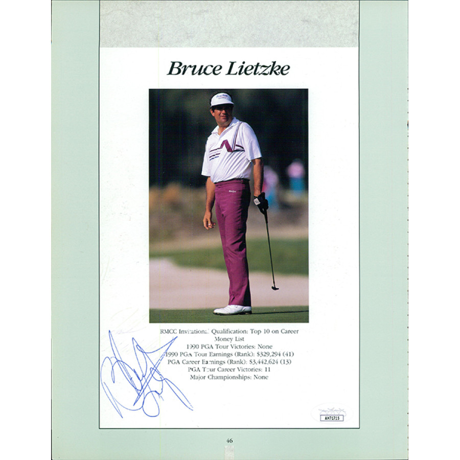 Signed Bruce Lietzke 8.5x11 cut page in blue pen. This item has been certified by James Spence Authentication (JSA) with sticker affixed to item and matching card.
