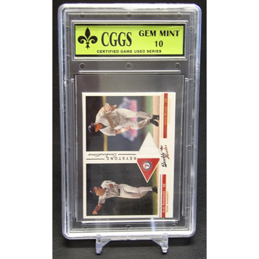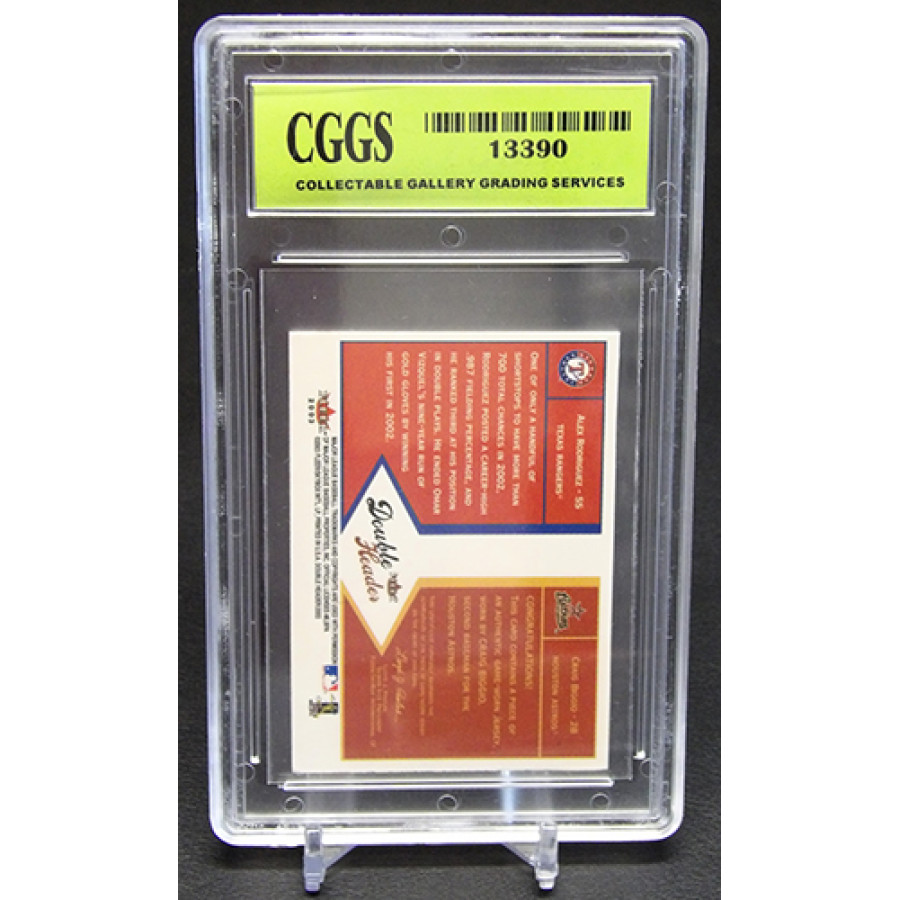 Alex Rodriguez and Craig Biggio 2003 Fleer Double Header Keystone Combinations baseball card. It is graded a CGGS 10 Gem Mint. There is some wearing of the case.