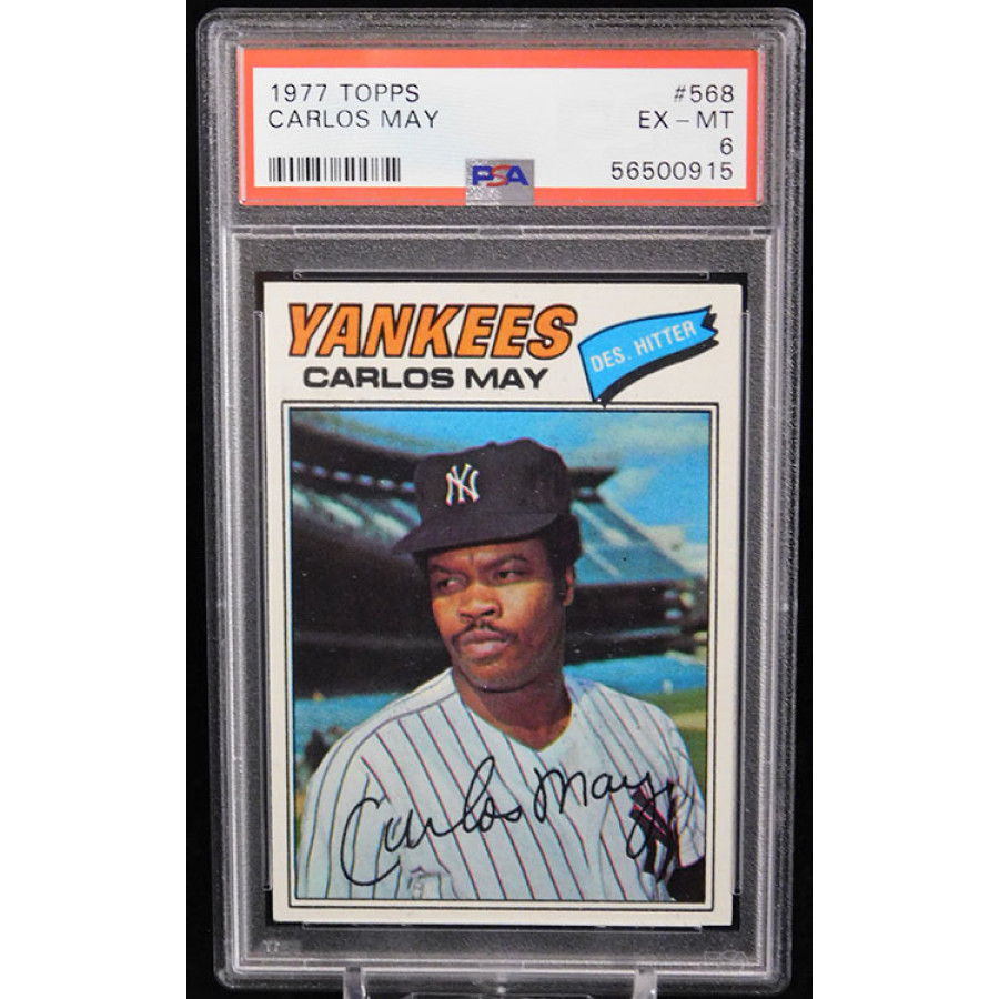 Carlos May New York Yankees 1977 Topps baseball card #568. It is graded a PSA 6 EX-MT.