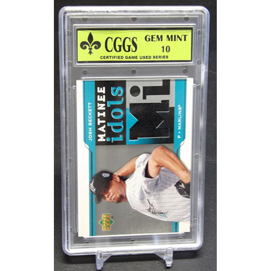 Josh Beckett Florida Marlins 2004 Upper Deck Matinee Idols baseball card #MI-BE. It is graded a CGGS 10 Gem Mint. There is some wearing of the case.