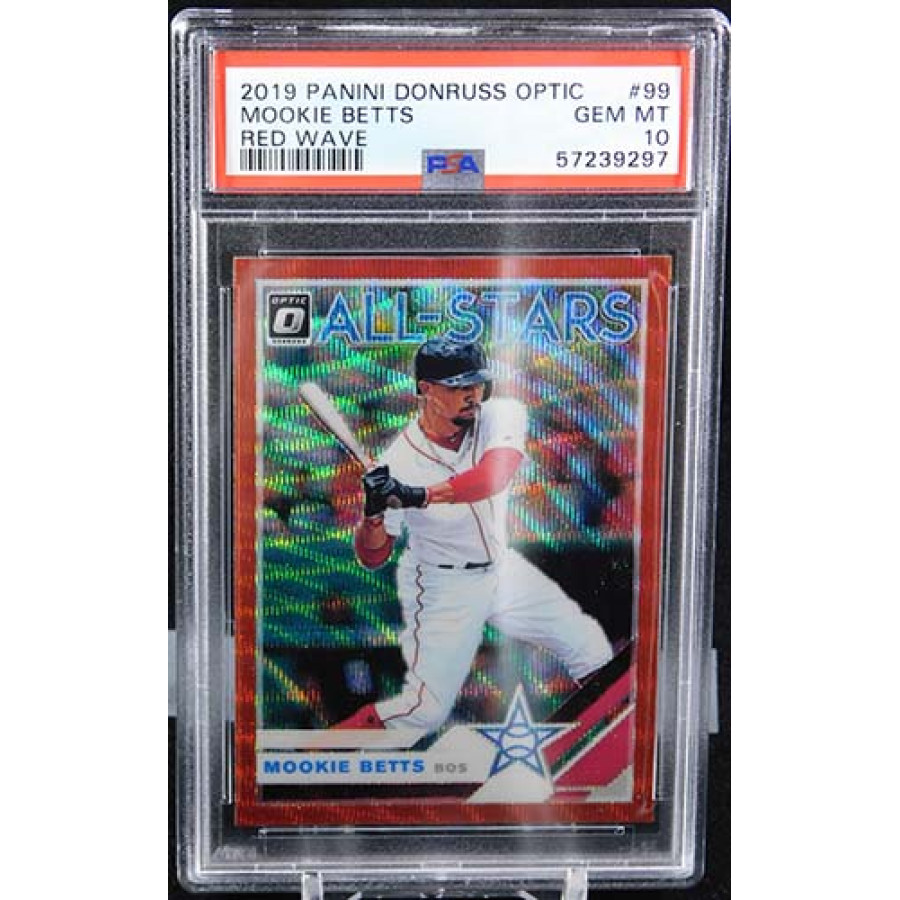 Mookie Betts Boston Red Sox 2019 Panini Donruss Optic Red Wave baseball card #99. It is graded a PSA 10 Gem Mint.