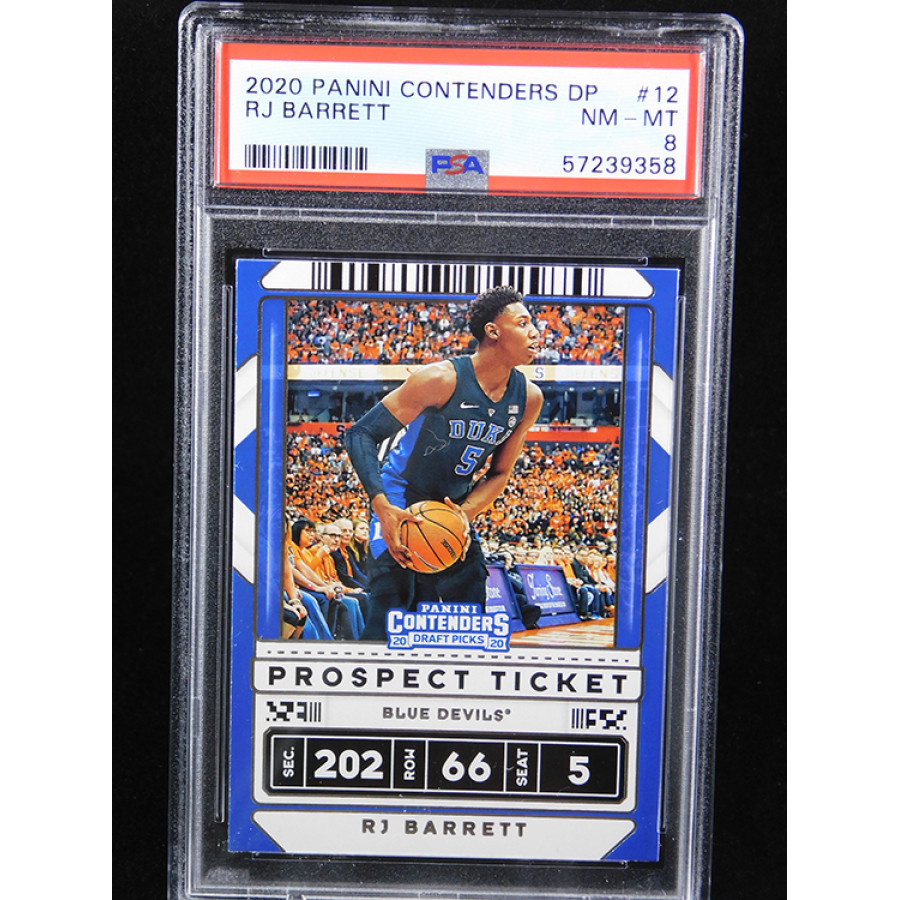 RJ Barrett 2020 Panini Contenders Draft Picks Prospect Ticket Basketball Card #12. PSA has graded this card a 8 Near Mint.