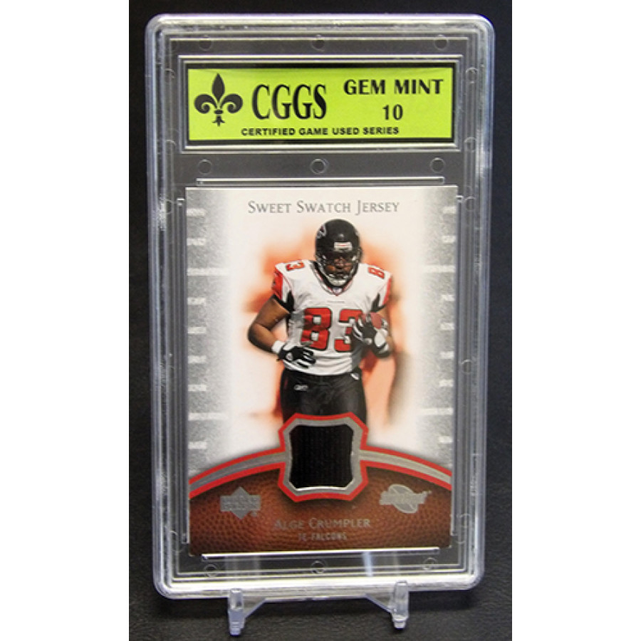 Alge Crumpler Atlanta Falcons 2007 Upper Deck Sweet Spot Sweet Swatch Jersey Football Card #SS-AS. CGGS has graded this card a 10 Gem Mint. The case has some wearing to it.