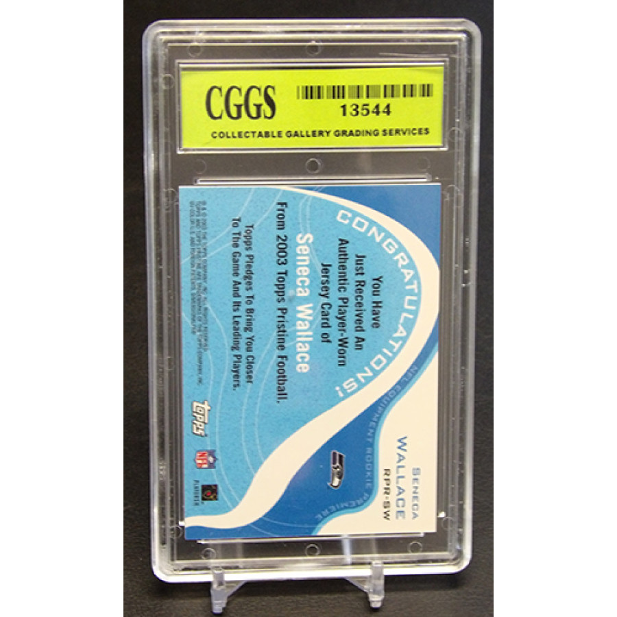 Seneca Wallace Seattle Seahawks 2003 Topps Pristine Rookie Premiere Football Card #RPR-SW. CGGS has graded this card a 10 Gem Mint. The case has some wearing to it.