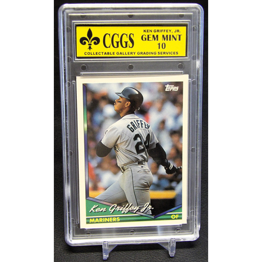 Ken Griffey Jr. Seattle Mariners 1994 Topps baseball card #400. It is graded a CGGS 10 Gem Mint. There is some wearing of the case and a chipped corner.