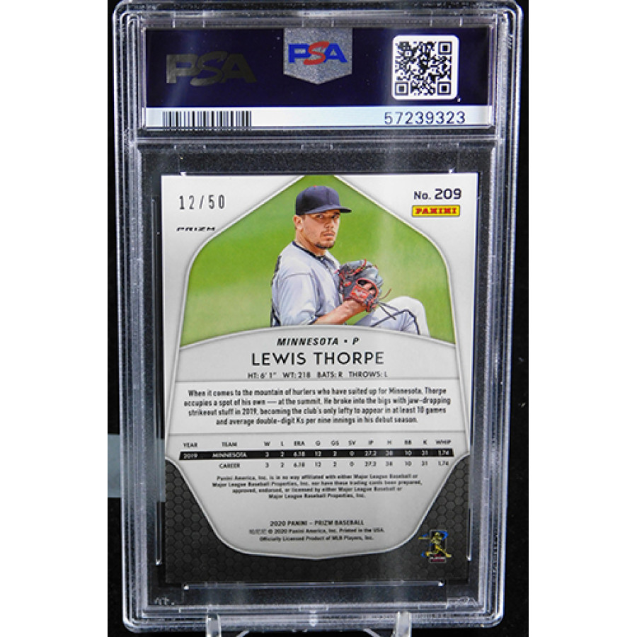 Lewis Thorpe Minnesota Twins 2020 Panini Prizm Snake Skin baseball card #209. This is numbered 12 of 50. It has been graded a PSA 9 Mint.
