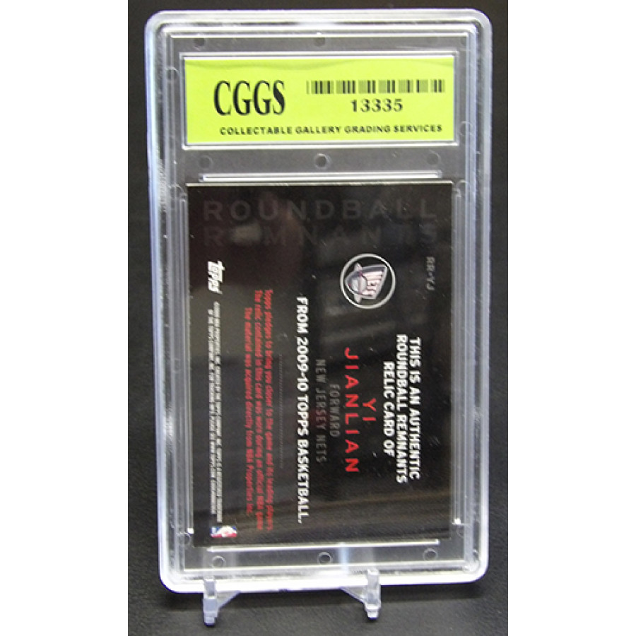 Yi Jianlian New Jersey Nets 2009-10 Topps Roundball Remnants Jersey Basketball Card #RR-YJ. CGGS has graded this card a 10 Gem Mint. There is some wearing of the case.