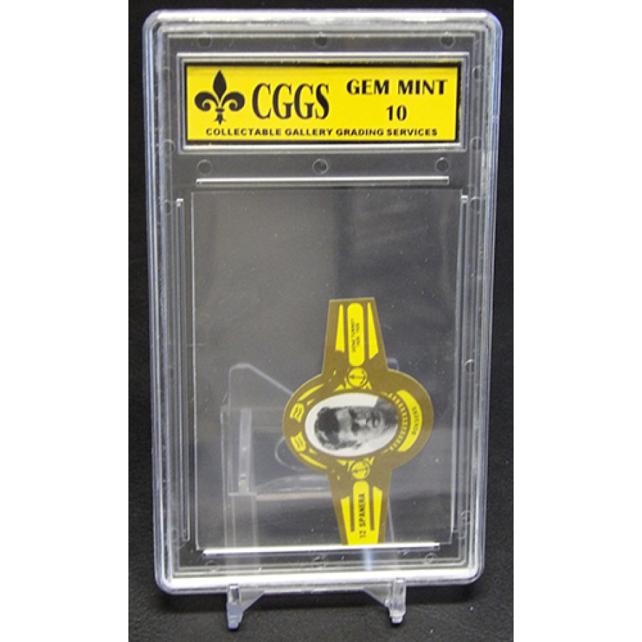 Gene Tunney 1979 Spanera Boksers Cigar Label #12. It is graded a CGGS 10 Gem Mint. There is some wearing of the case.