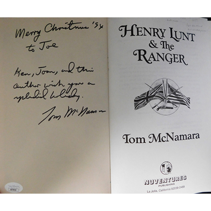 Signed Tom McNamara Henry Lunt & The Ranger first edition hardcover book in black ink on the inside cover page personalized. The book is in used condition. This item is certified by James Spence Authentication (JSA) with sticker affixed to item and matching card.