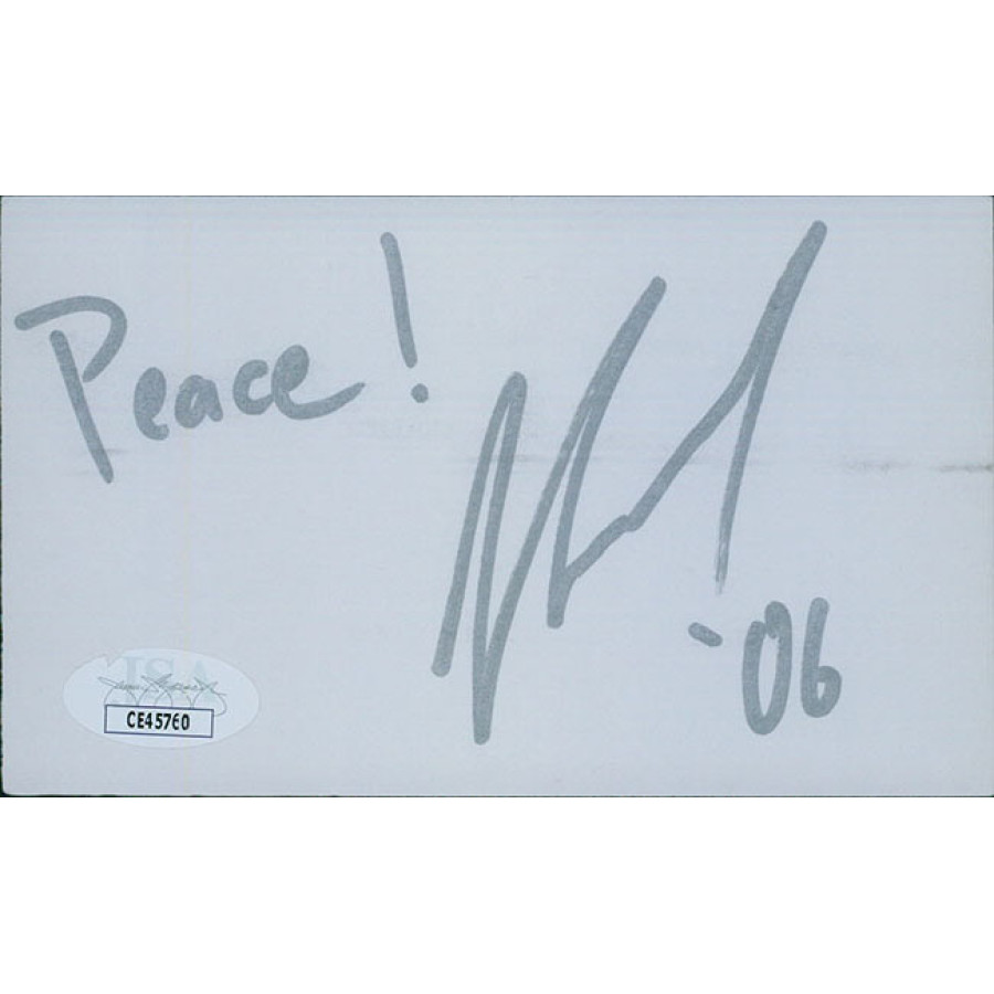 Signed Joshua Leonard 3x5 index card in silver sharpie. This item has been certified by James Spence Authentication (JSA) with sticker affixed to item and matching card.