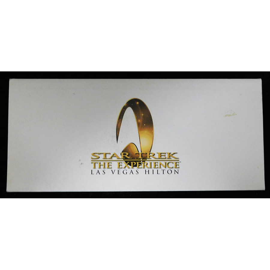 Signed Star Trek LeVar Burton and Jonathan Frakes The Experience Las Vegas Hilton Warp'N Ride Fan Preview Pamphlet Coin in black ink by both. The pamphlet measure 4x9 closed. The item has some scuffing, dirt marks, light kinks and creases. This item has been certified by James Spence Authentication (JSA) with sticker affixed to item and matching card.