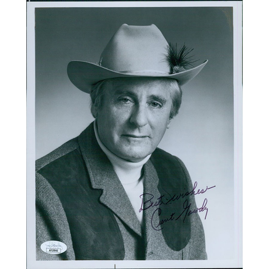 Signed Curt Gowdy 8x10 glossy finish photo in black ink. The photo has some light kinks. This item has been certified by James Spence Authentication (JSA) with sticker affixed to item and matching card.