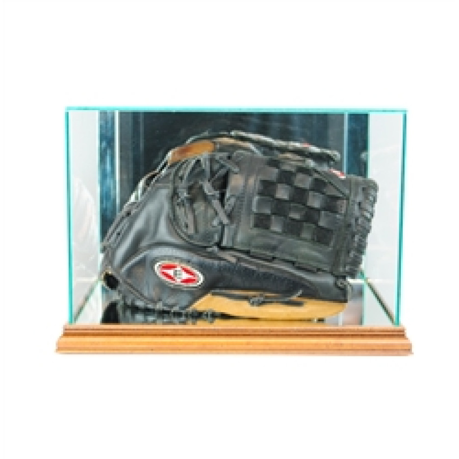 This glove display case is made with mirror on the bottom and back to give a full view of your glove. This case is UV protected and is supported by real wood molding. The adhesives contain no acids that may deteriorate signatures.