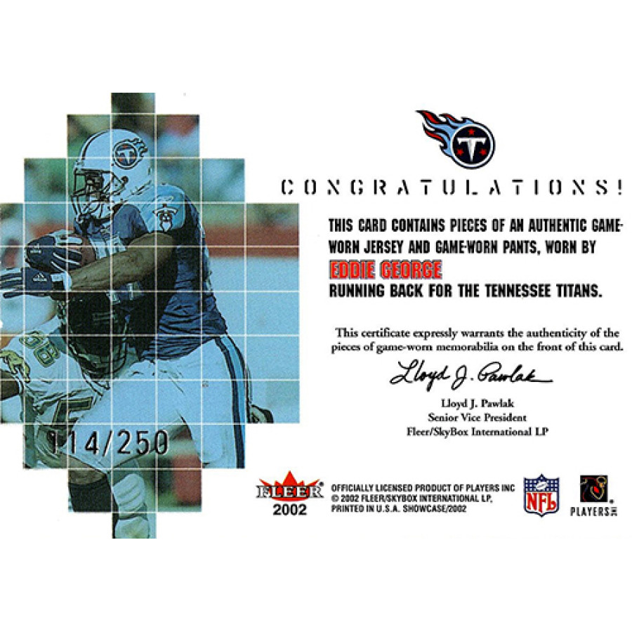 Eddie George Tennessee Titans 2002 Fleer Showcase Top 2 Bottom Football Card. This card is numbered 114 of 250.