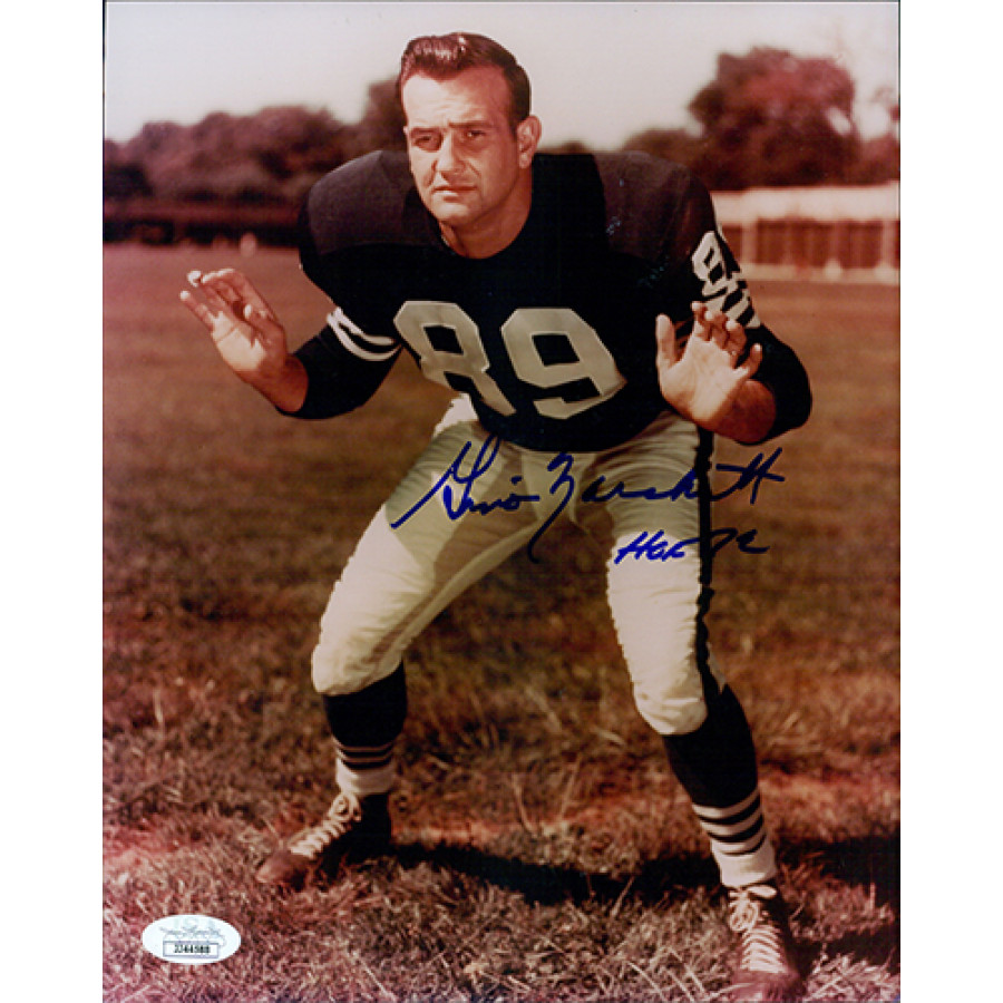 Signed Gino Marchetti Baltimore Colts 8x10 glossy photo in blue sharpie with "HOF '72" inscription. This item is certified by James Spence Authentication (JSA) with sticker affixed to item and matching card.