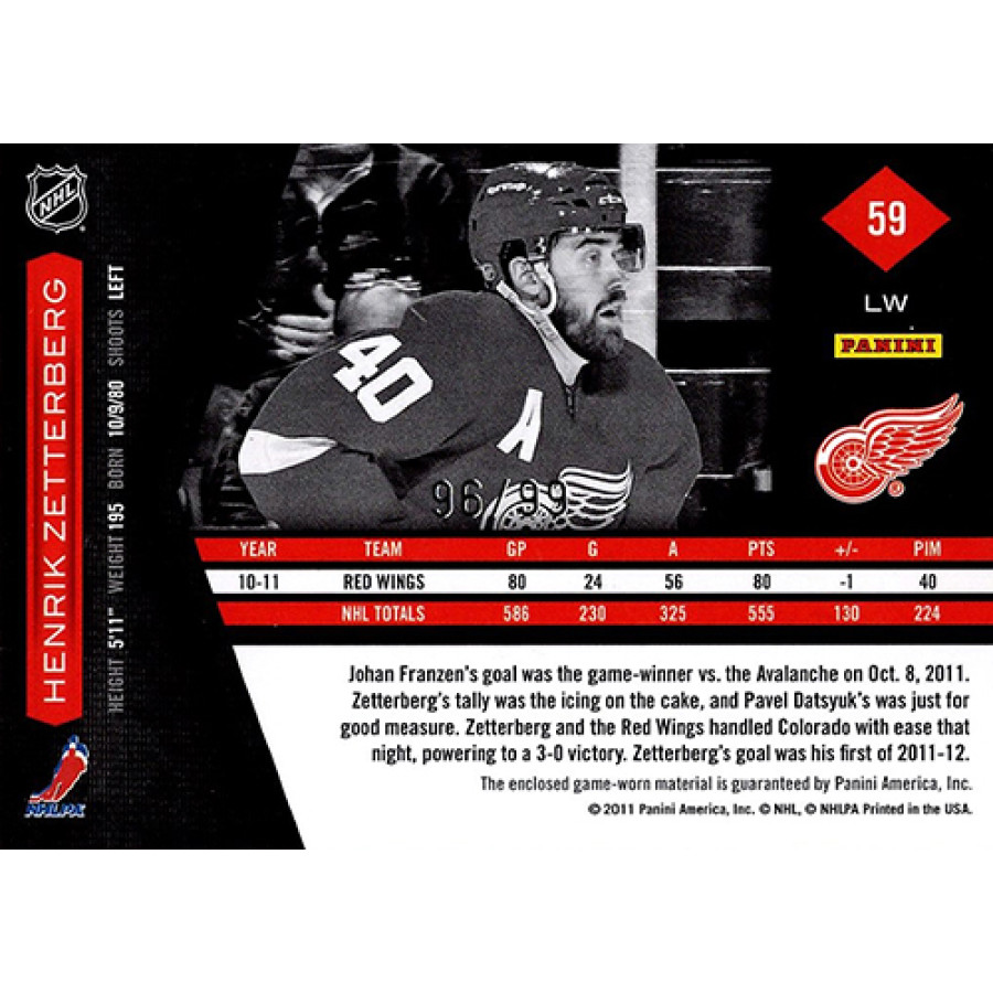 Henrick Zetterberg Detroit Red Wings 2011-12 Panini Limited Materials Jersey Hockey Card #59. Its numbered 96 of 99.