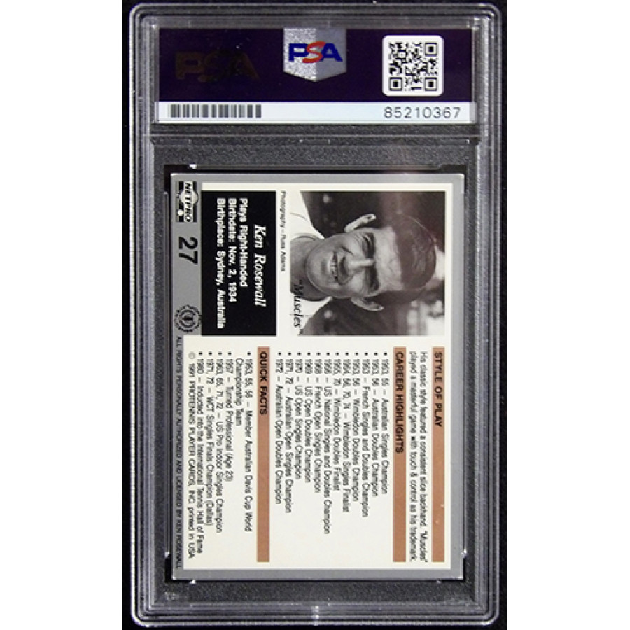 Signed Ken Rosewall 1991 Netpro The Legends Tennis Card #27 in blue pen. This item is certified by Professional Sports Authenticator (PSA) encapsulated.