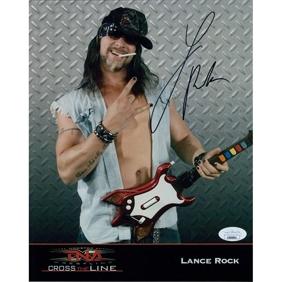 Signed Lance Rock 8x10 glossy finish photo in black sharpie. This item has been certified by James Spence Authentication (JSA) with sticker affixed to item and matching card.