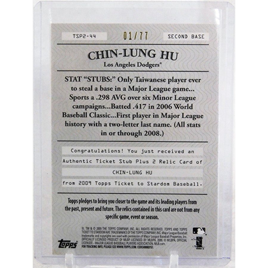 Chin-Lung Hu Los Angeles Dodgers 2009 Topps Ticket To Stardom Baseball Card #TSP2-44. The card is numbered 1 of 77.