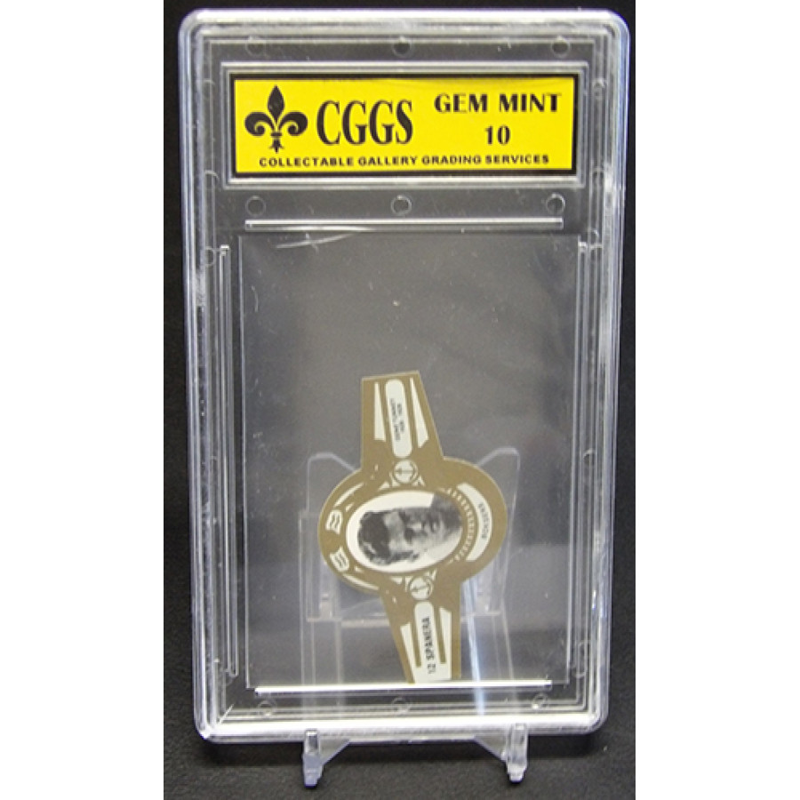 Gene Tunney 1979 Spanera Boksers Cigar Label #12. It is graded a CGGS 10 Gem Mint. There is some wearing of the case.
