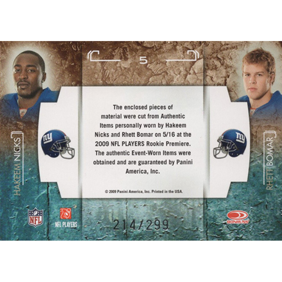 Hakeem Nicks & Rhett Bomar 2009 Rookies Stars Studio Rookies Combos Card #5 /299