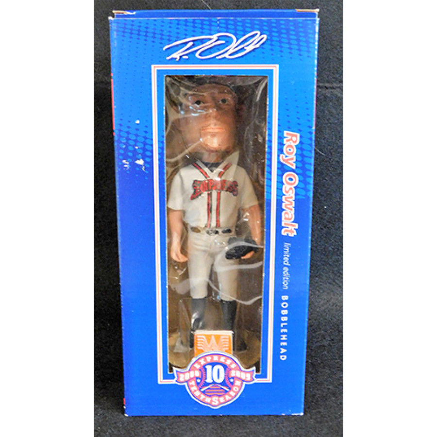 Official 2009 Roy Oswalt Round Rock Express Stadium Give Away (SGA) Bobblehead. It was given out 6/20/09. This is new in original box with some wear and tear to the box.