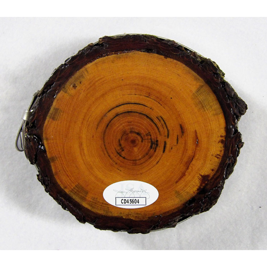 Signed Samuel Armenteros 4 inch round piece of wood in black ink. The wood is about 1.5 inches thick. This item is certified by James Spence Authentication (JSA) with sticker affixed to item and matching card.