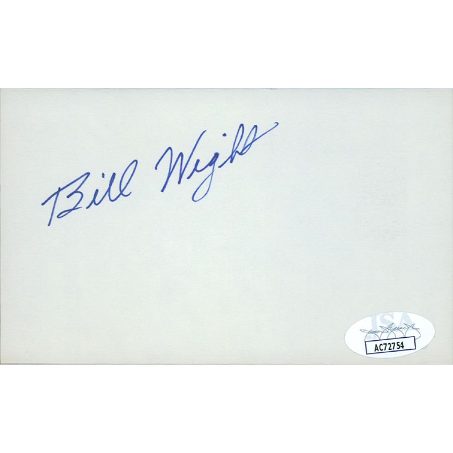 Signed Bill Wight 3x5 Index Card in blue ink. This item has been certified by James Spence Authentication (JSA) with sticker affixed to item and matching card.