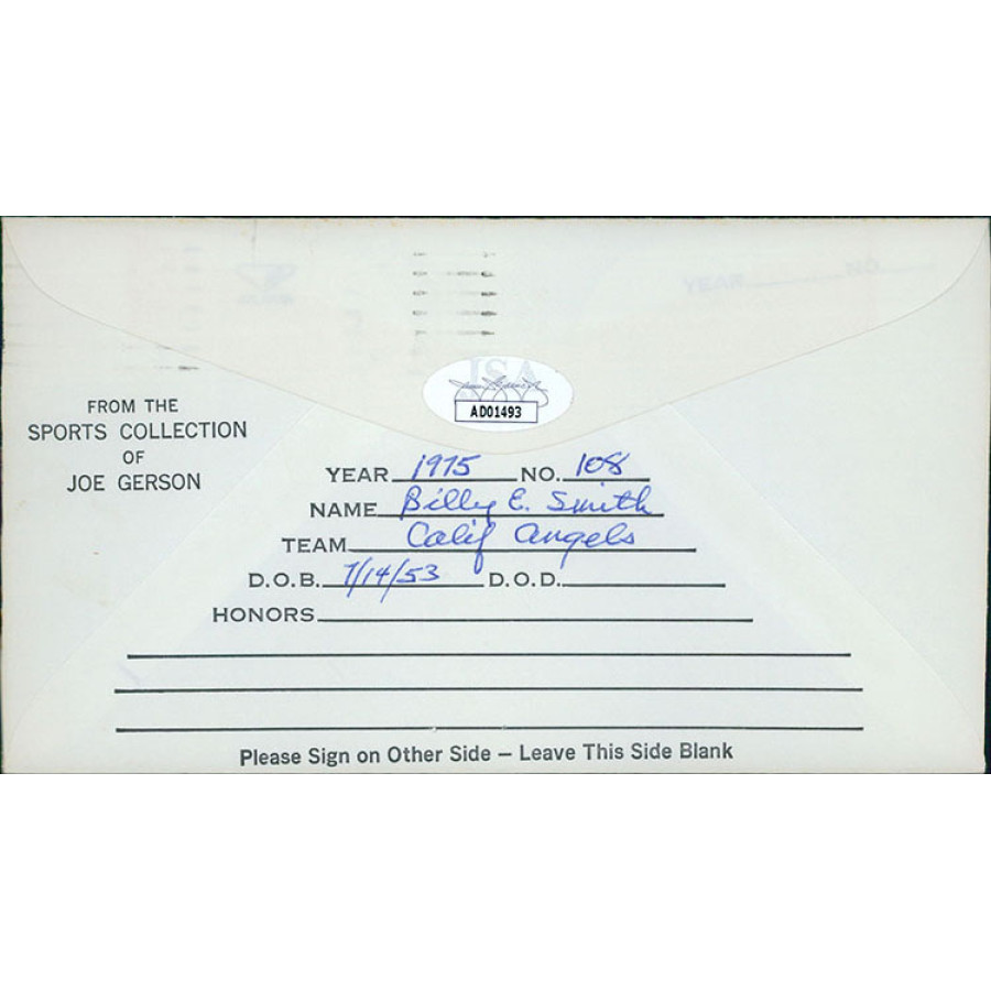 Billy Smith Angels Orioles Signed First Day Issue Cachet JSA Authenticated