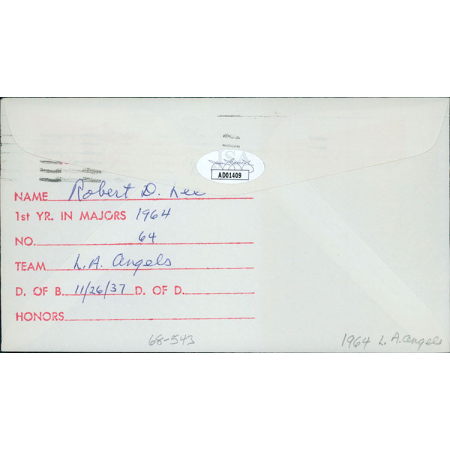Bob Lee California Angels Signed First Day Issue Cachet JSA Authenticated