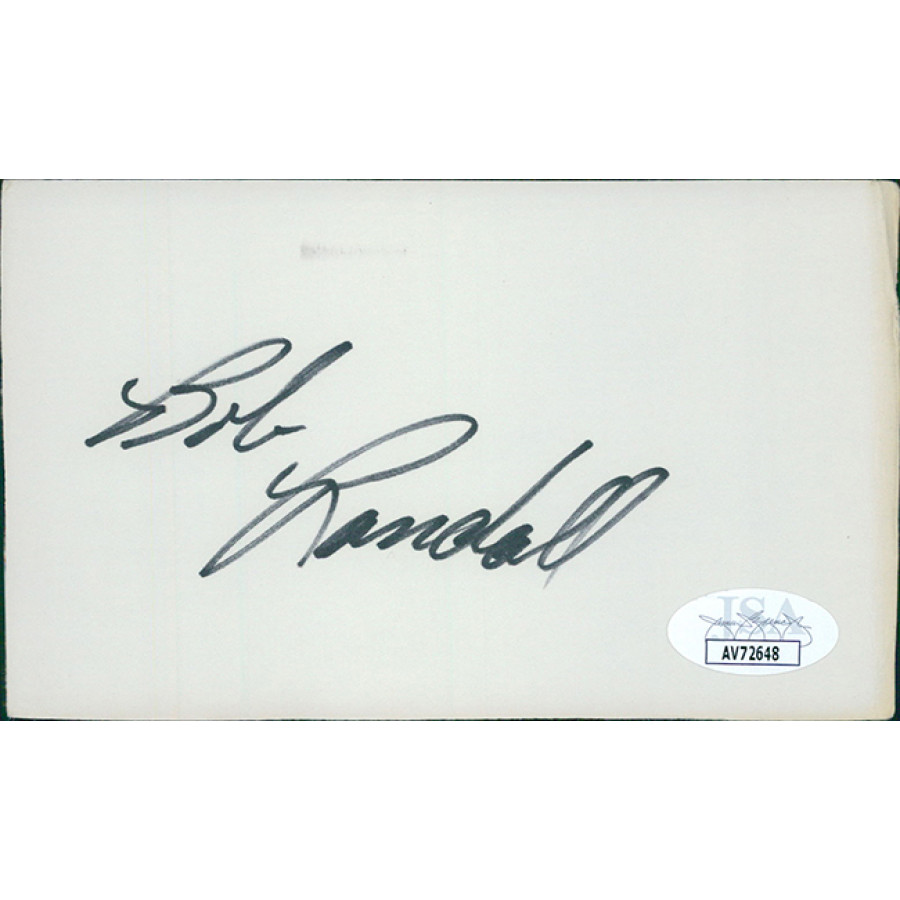 Signed Bob Randall 3x5 index card in black sharpie. This item has been certified by James Spence Authentication (JSA) with sticker affixed to item and matching card.