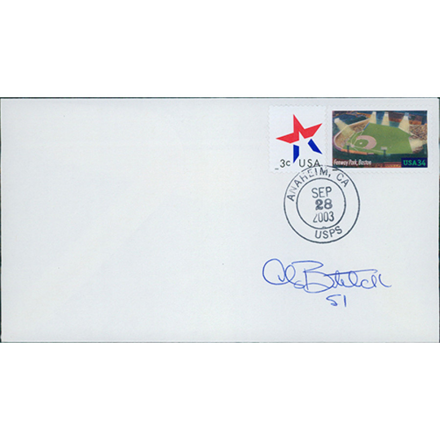 Signed Chris Bootcheck Fenway Park Stamped Envelope Cachet in blue pen. This item has been certified by James Spence Authentication (JSA) with sticker on item and matching card.
