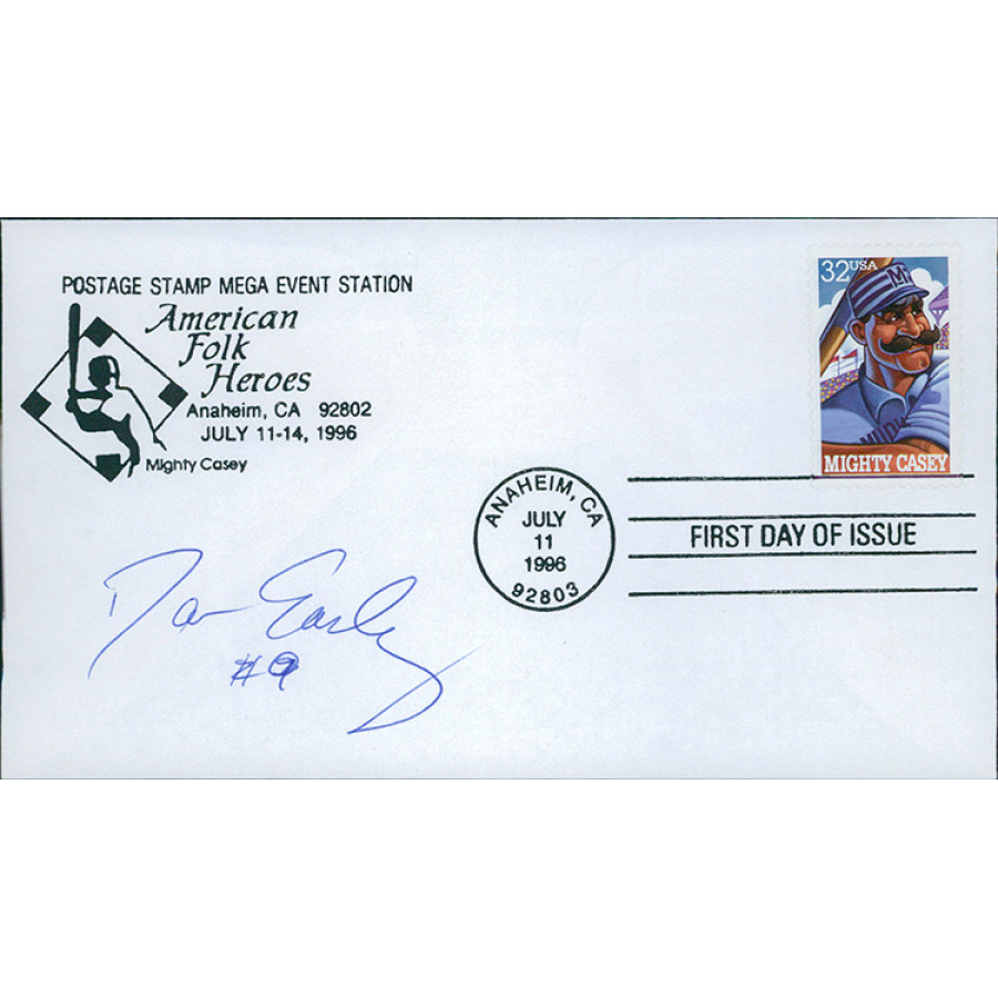 Signed Damion Easley American Folk Heroes First Day Issue Mighty Casey Stamped Envelope Cachet in blue pen. This item has been certified by James Spence Authentication (JSA) with sticker on item and matching card.