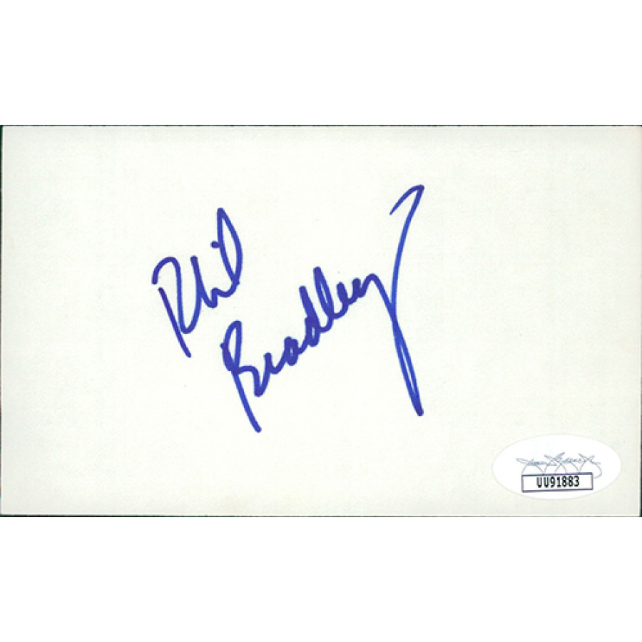 Signed Phil Bradley 3x5 Index Card in blue sharpie. This item has been certified by James Spence Authentication (JSA) with sticker affixed to item and matching card.