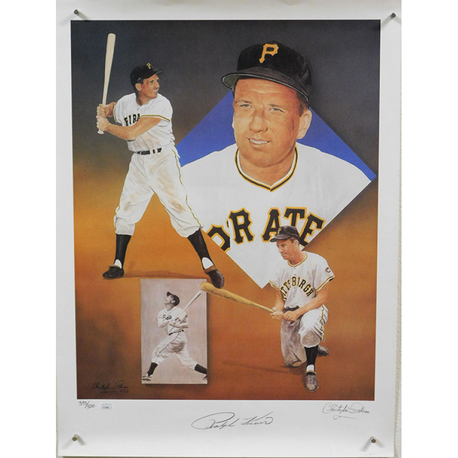 Signed Ralph Kiner Pittsburgh Pirates 18x24 Limited Edition Lithograph in pencil. This is numbered 393 of 500. This is also signed by the artist Christopher Paluso. The litho does have some light dirt marks. This item is certified by James Spence Authentication (JSA) with sticker affixed to item and matching card.