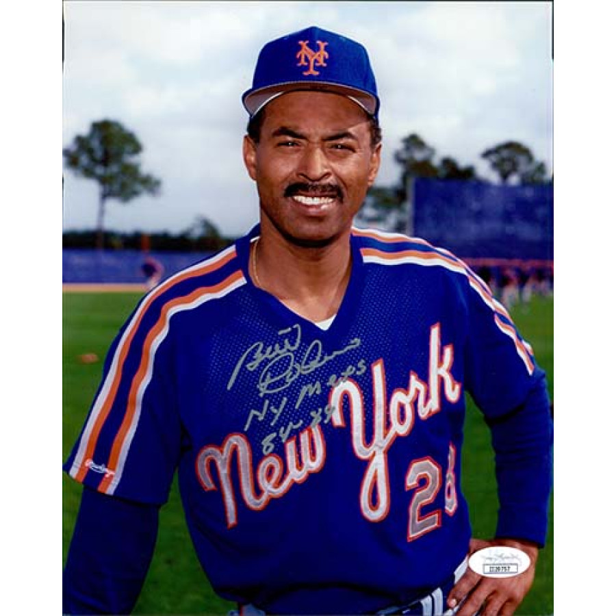 Signed Bill Robinson New York Mets 8x10 matte finish photo in silver ink with "NY Mets 84-89" inscription. This item has been certified by James Spence Authentication (JSA) and will come with a sticker on the item and matching card.