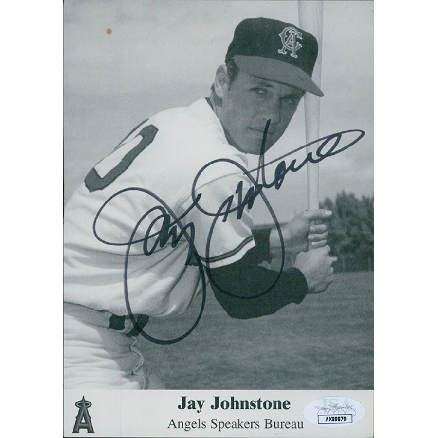 Signed Jay Johnstone California Angels 5x7 cardstock photo in black sharpie. There are some dirt marks. This item has been certified by James Spence Authentication (JSA) and will come with a sticker on the item and matching card.